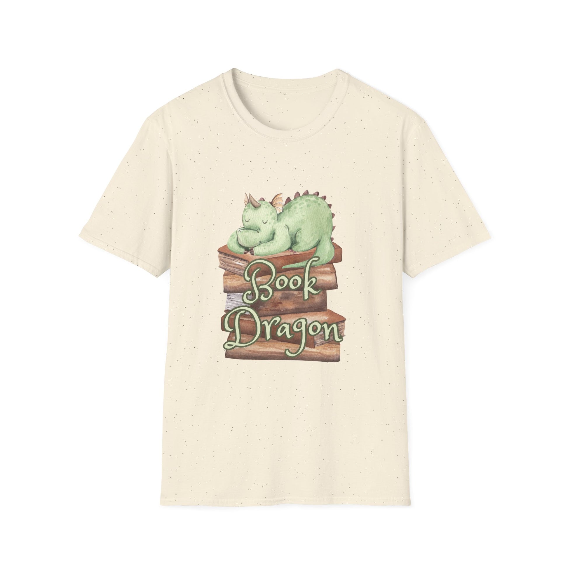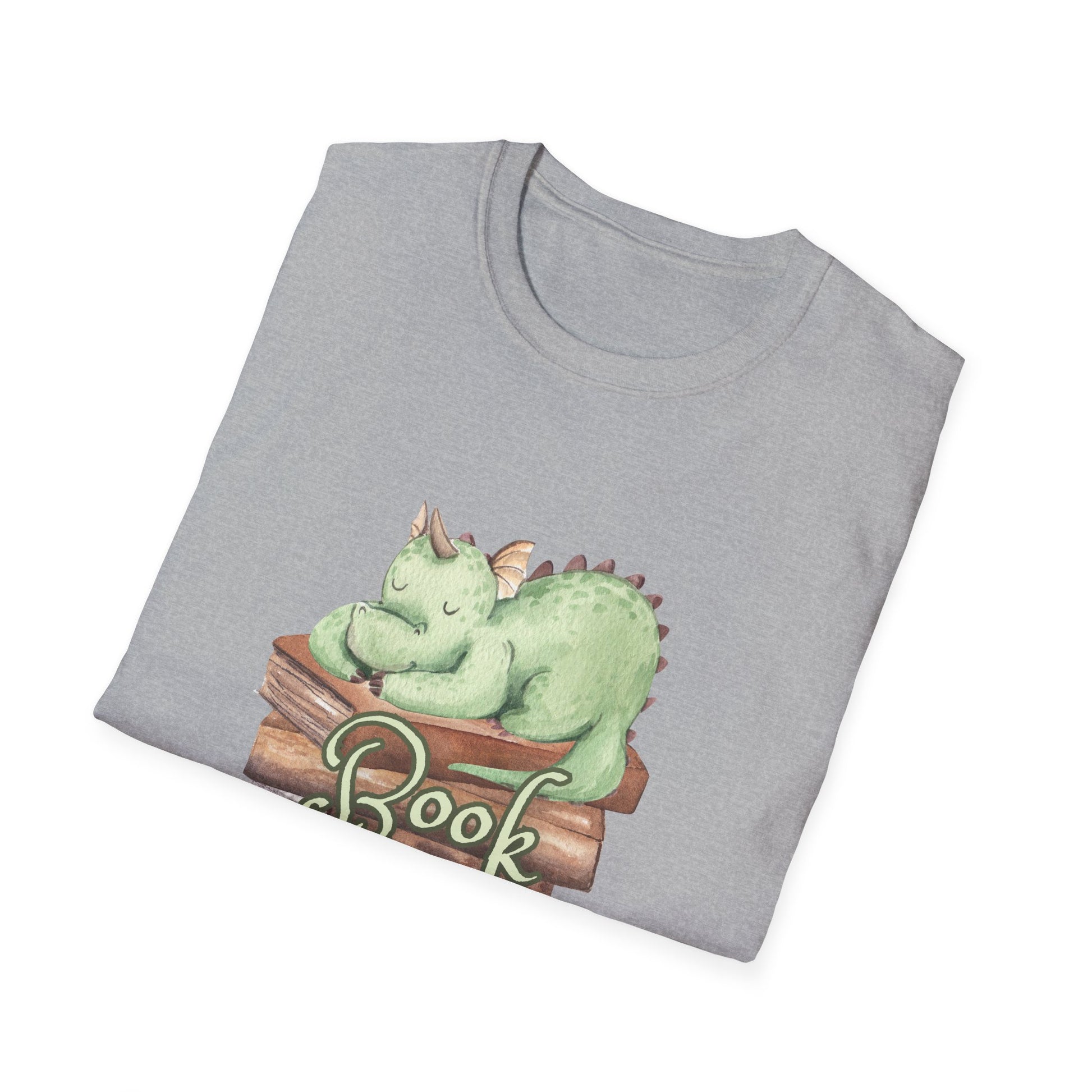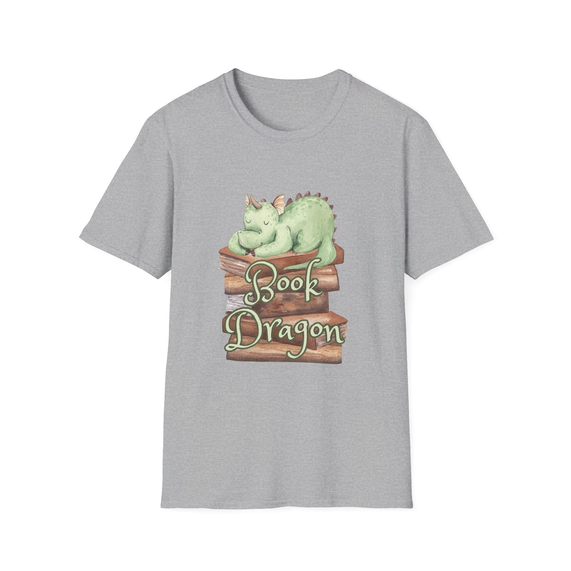 Soft, light, and quietly whimsical — this tee brings a sleepy “book dragon” to your everyday rhythm. A gentle, mint-green dragon curls on a stack of worn books, the illustration carrying a hand-painted, storybook feel that invites slow afternoons with a novel and a warm drink. The shirt’s classic crew silhouette sits cleanly under cardigans or alone on summer walks. Built from ring-spun cotton and finished with a smooth print, it wears like a well-loved page: familiar, comfortable, and quietly imaginative. Slip it on when you want to read, relax, or share a small, bookish smile with fellow readers.